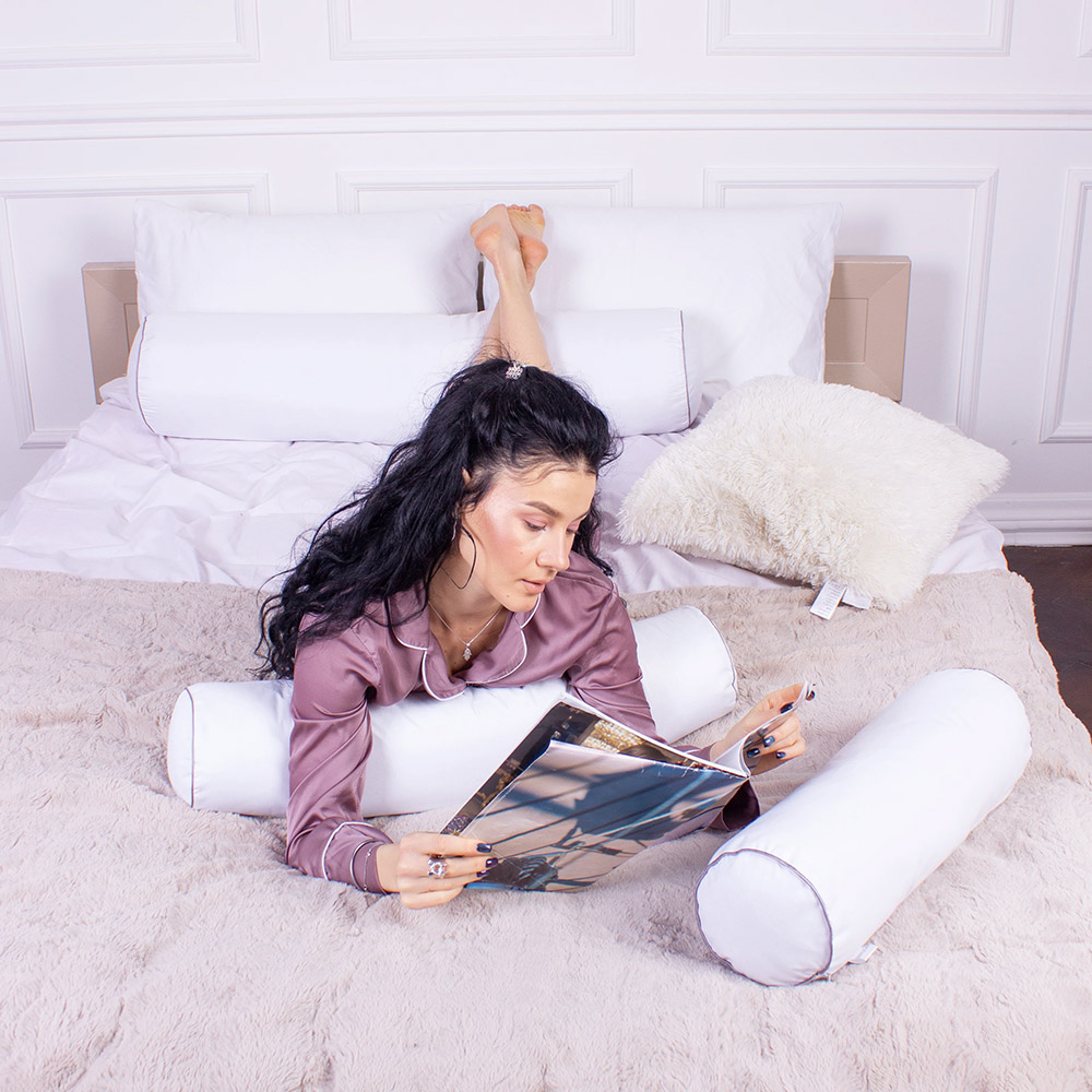 Подушка у формі валика має ортопедичні властивості, використовується не тільки для сну, а й для комфортного відпочинку. Універсальний дизайн і якісні матеріали роблять подушку ідеальною для використання в якості підтримки для спини, шиї або ніг. Подушка може також використовуватися як декоративний елемент на ліжку, дивані або кріслі, а також як практичний аксесуар для відпочинку.