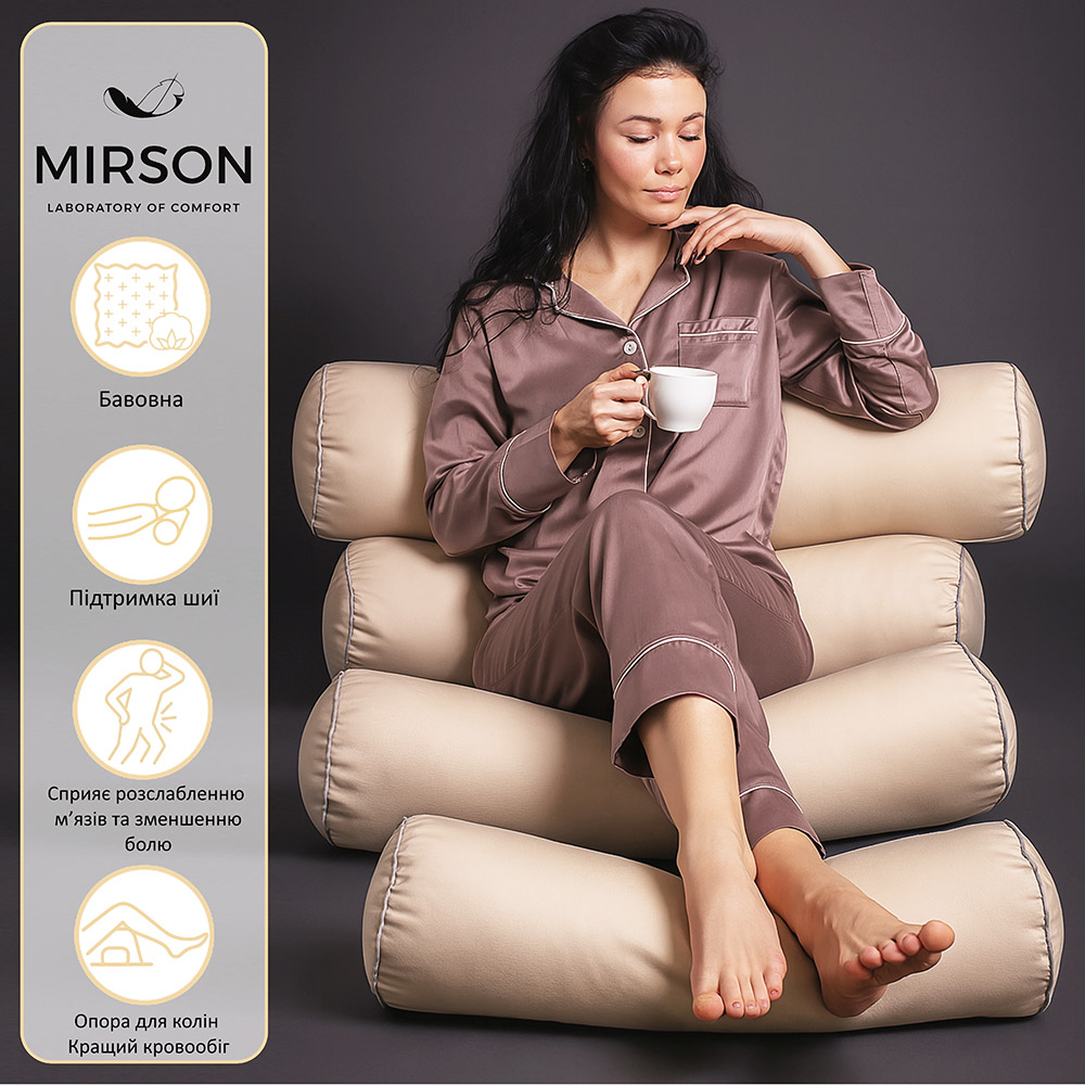 Подушки-валики з наповнювачем із полістиролу від української ТМ MirSon. Вироби комфортні, дарують здоровий сон і відпочинок. Подушки добре зберігають форму, порадують гарним дизайном і добротним пошиттям. Подушки MIRSON виготовляються за високими стандартами якості із застосуванням сучасного обладнання. Ретельно підібрані наповнювачі, тканини і складові допомагають виробляти вироби високої якості.