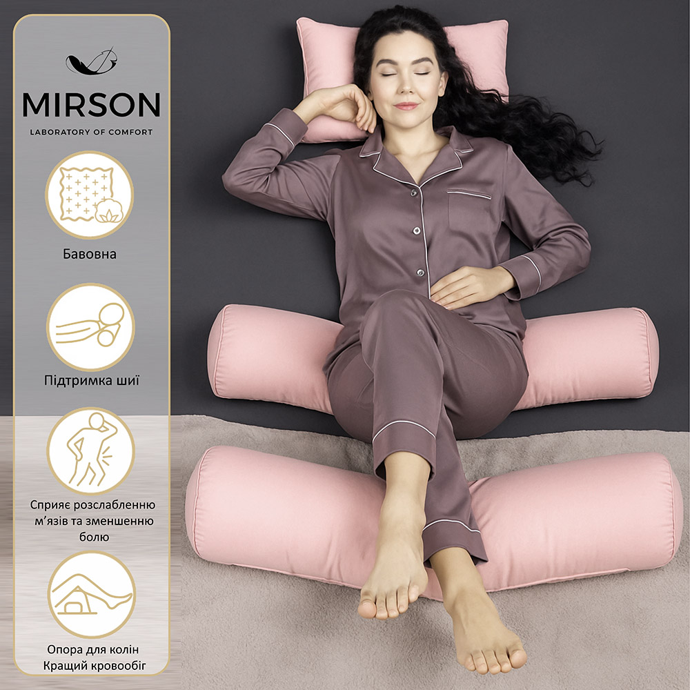 Подушки-валики з наповнювачем із полістиролу від української ТМ MirSon. Вироби комфортні, дарують здоровий сон і відпочинок. Подушки добре зберігають форму, порадують гарним дизайном і добротним пошиттям. Подушки MIRSON виготовляються за високими стандартами якості із застосуванням сучасного обладнання. Ретельно підібрані наповнювачі, тканини і складові допомагають виробляти вироби високої якості.