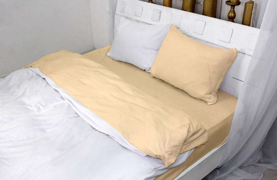 - Полуторний комплект (підковдра 160х220 см): підковдра 160х220 см (1 шт), простирадло 90х200 (+25) см на резинці (1 шт), наволочки 50х70 см (4 шт)
