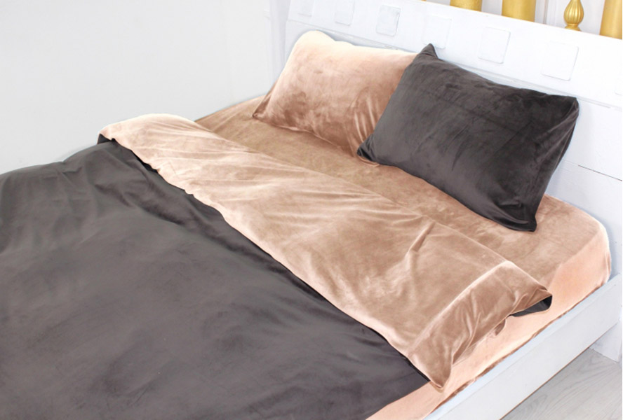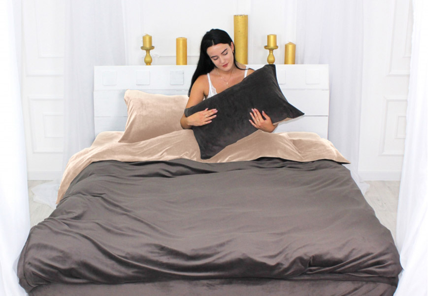 Стильний велюровий бежево-коричневий комплект преміум-класу. Ви обов'язково гідно оціните двоколірний лаконічний дизайн і якісний матеріал. Тканина бархатиста на дотик, з м'яким ворсом, щільна та тепла, відмінно підходить для зимових холодів, дарує затишок та комфорт під час сну.