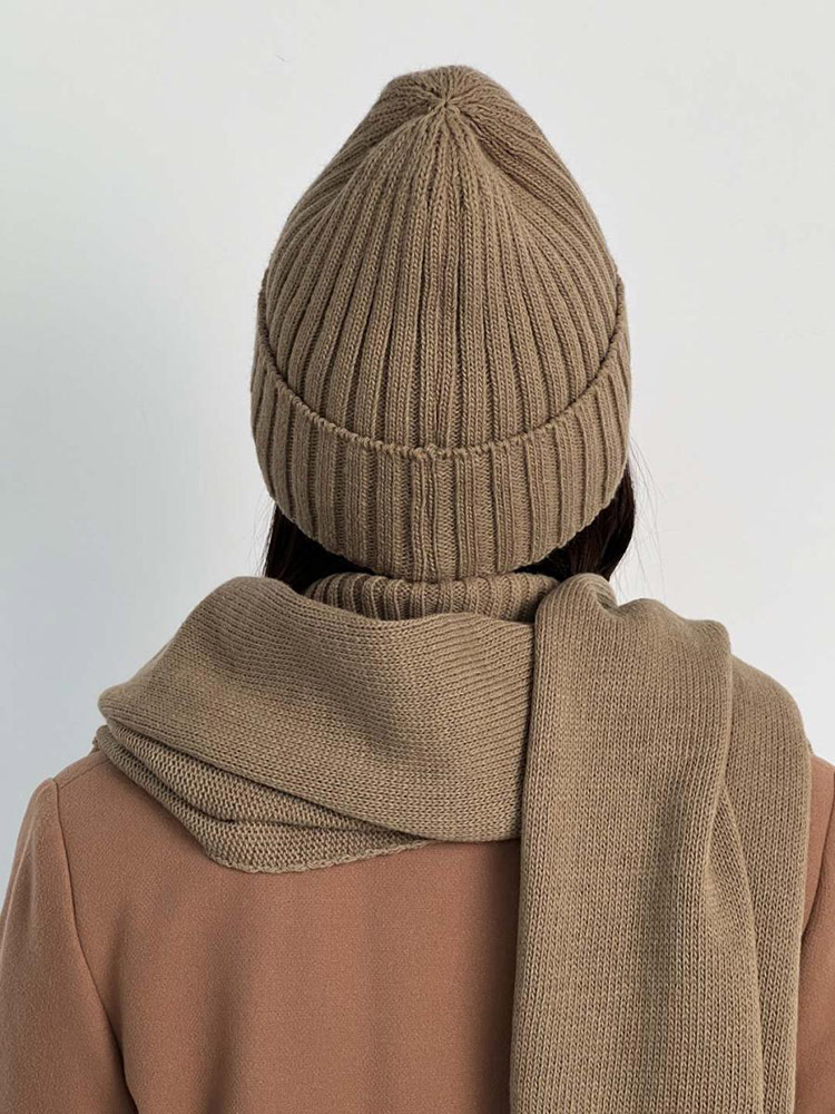 Шапка в'язана тепла Wool Art Knit горіхова