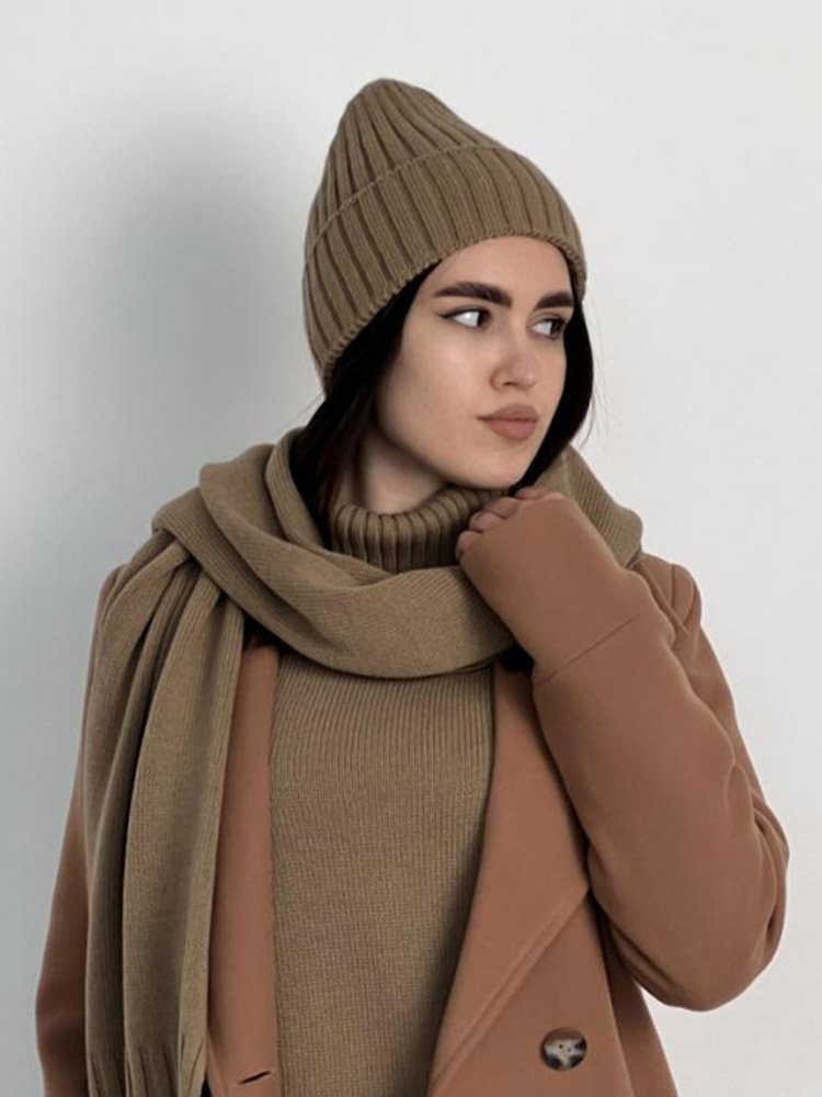 Шапка в'язана тепла Wool Art Knit горіхова.