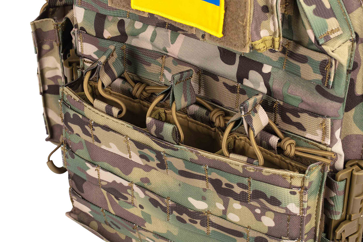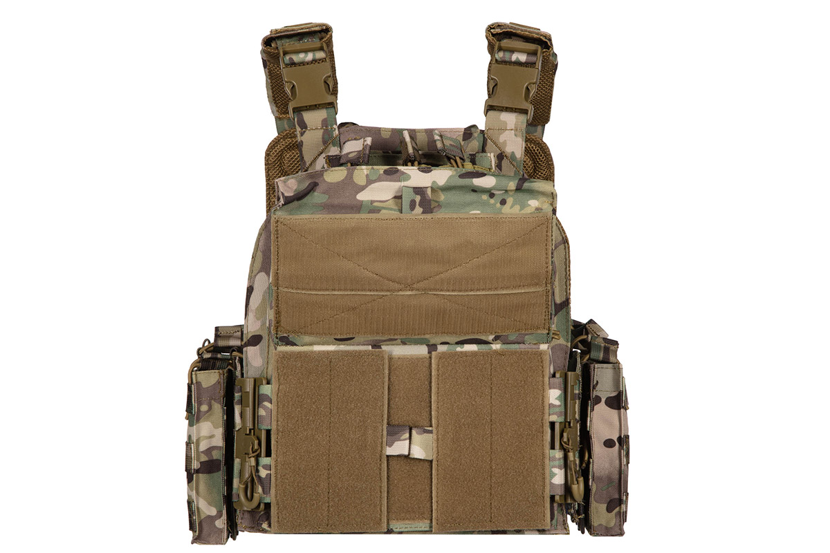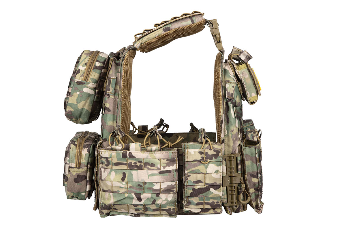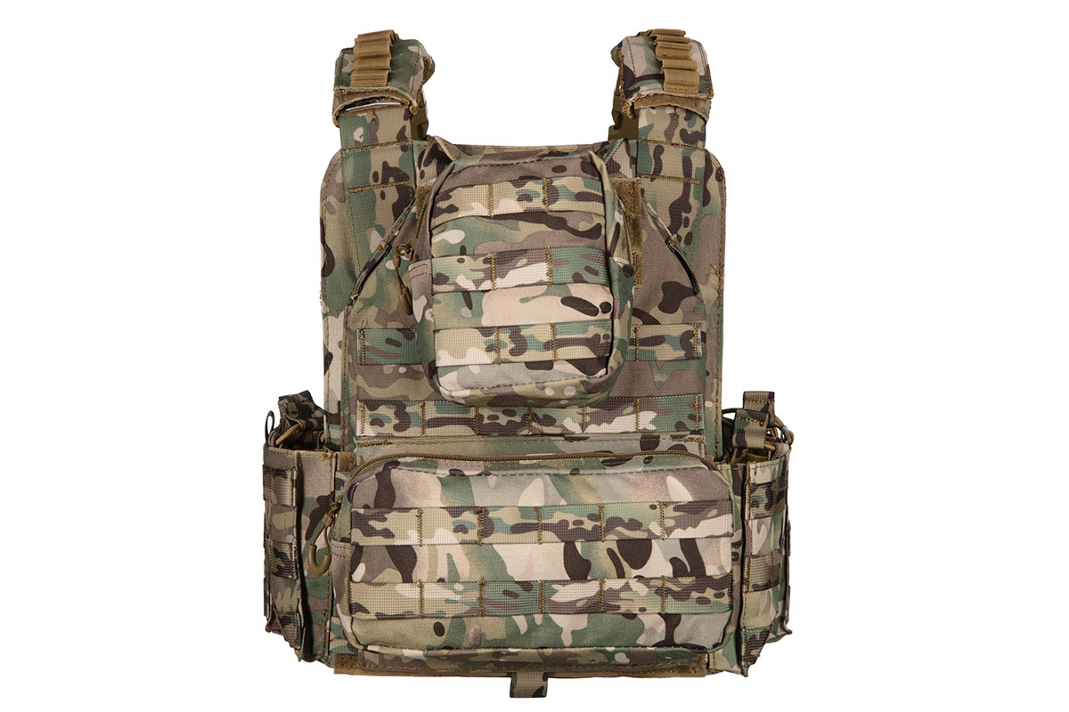 Плитоноска незамінна для кожного військового, є частиною тактичного спорядження, призначена для захисту бійця без втрати його мобільності. Плитоноска камуфляжного кольору, зручна, регулюється за висотою і за об'ємом. Плитоноска з одноточковим регульованим ременем для зброї. Плитоноска виконана з поліестеру і товстої нейлонової тканини, оснащена універсальним підсумком з кріпленнями MOLLE.