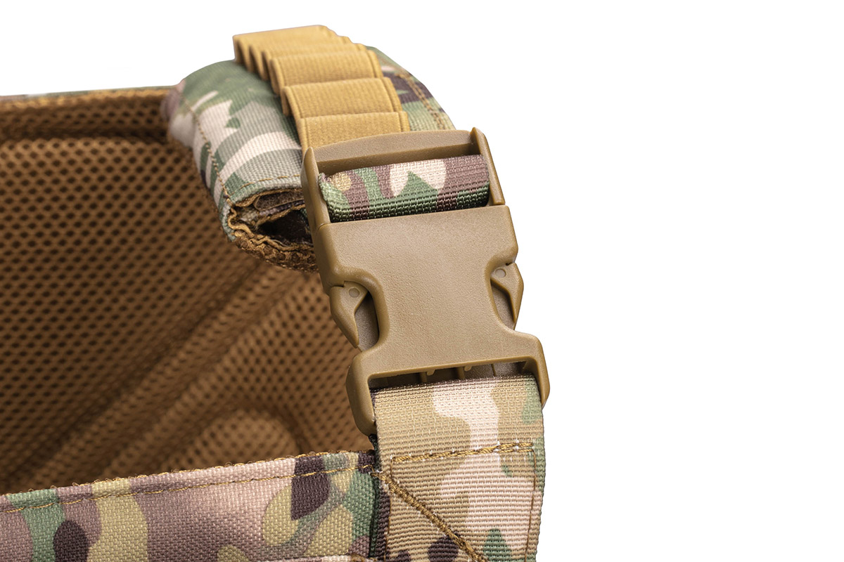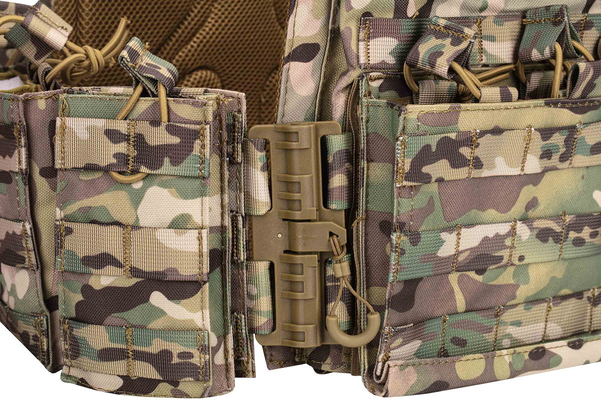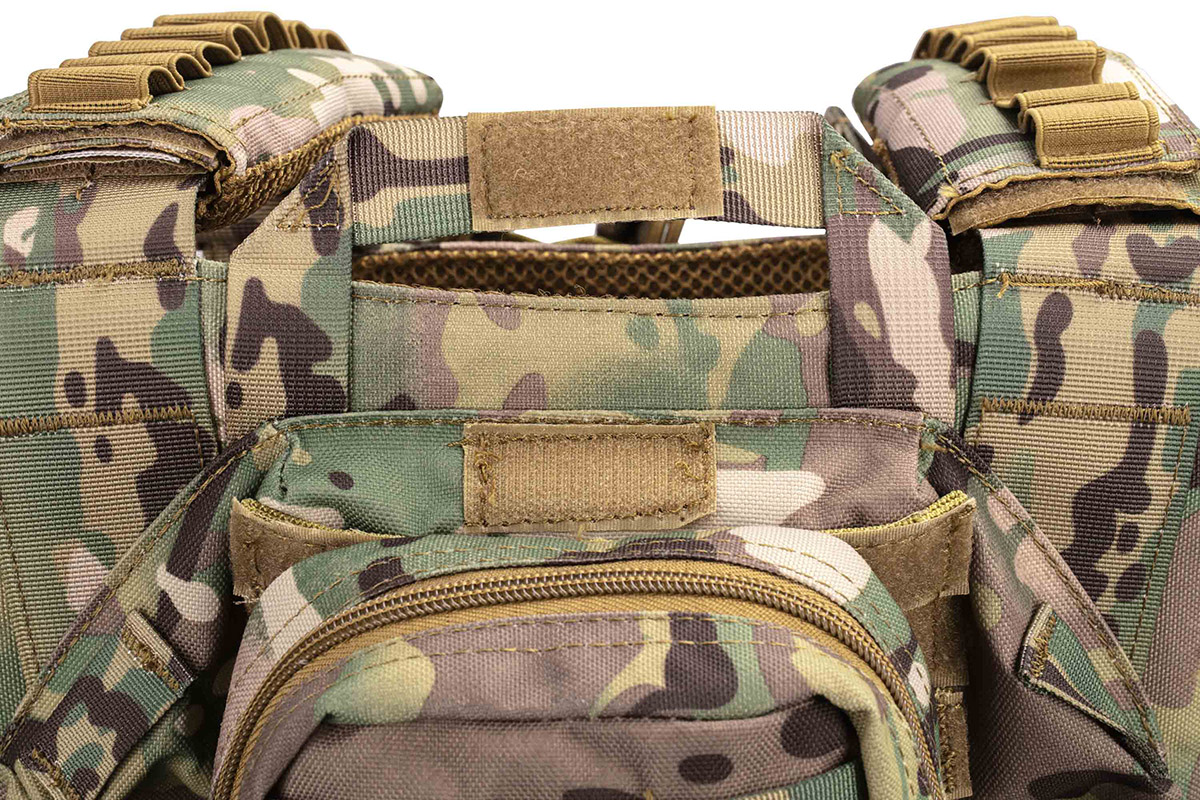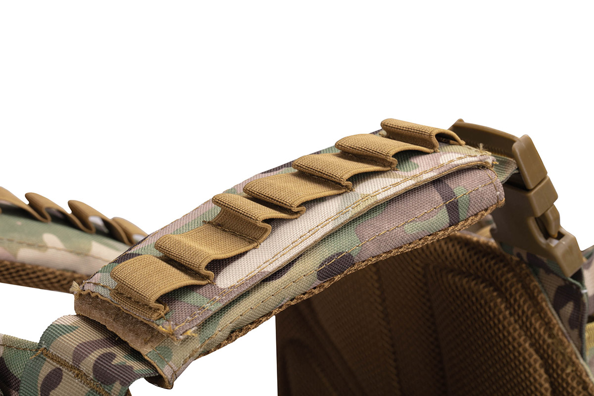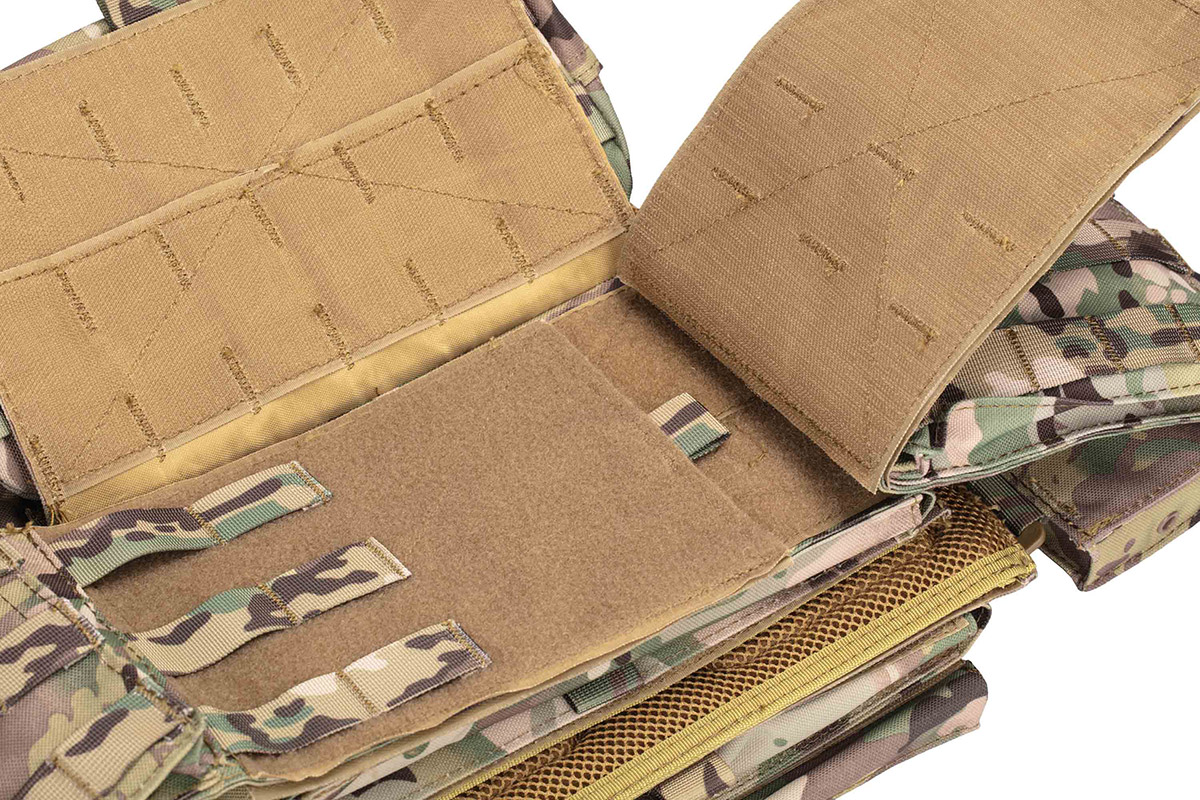 Плитоноска незамінна для кожного військового, є частиною тактичного спорядження, призначена для захисту бійця без втрати його мобільності. Плитоноска камуфляжного кольору, зручна, регулюється за висотою і за об'ємом. Плитоноска з одноточковим регульованим ременем для зброї. Плитоноска виконана з поліестеру і товстої нейлонової тканини, оснащена універсальним підсумком з кріпленнями MOLLE.