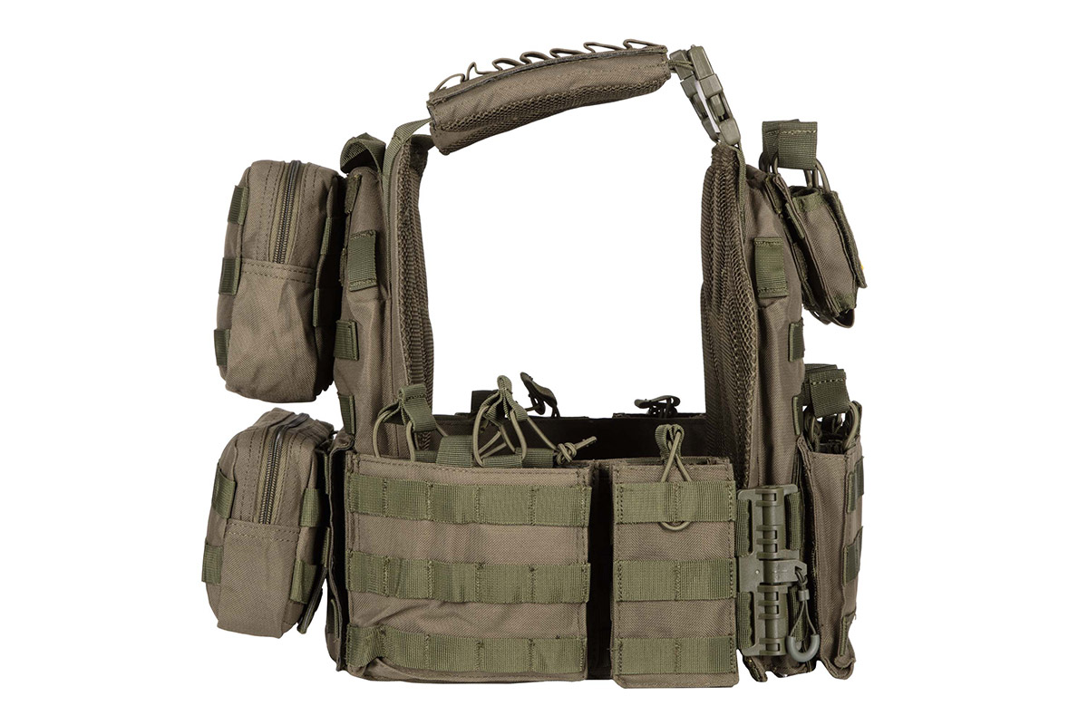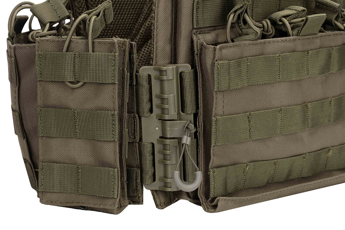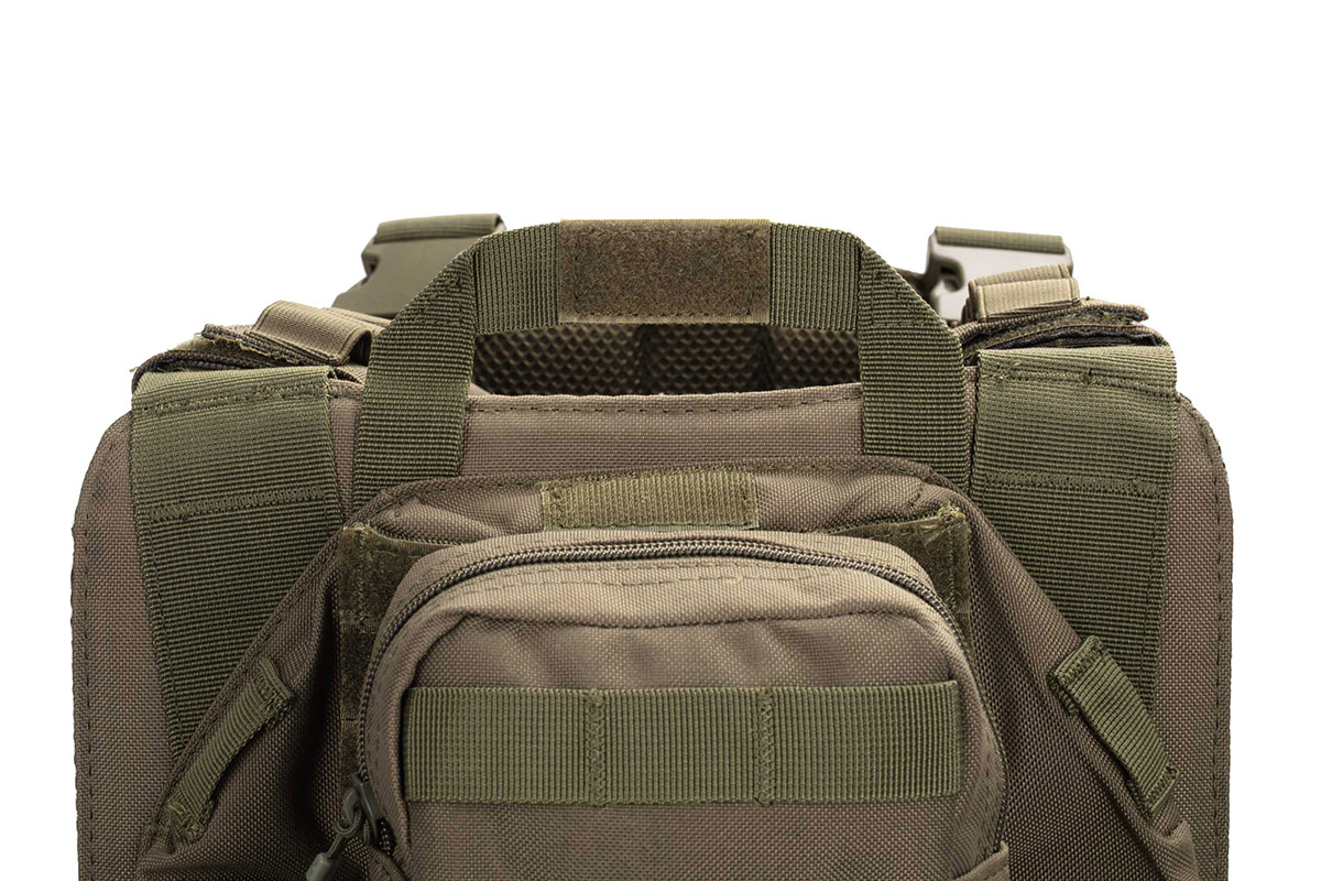 Плитоноска незамінна для кожного військового, є частиною тактичного спорядження, призначена для захисту бійця без втрати його мобільності. Плитоноска зеленого кольору, зручна, регулюється за висотою і за об'ємом. Плитоноска з одноточковим регульованим ременем для зброї. Плитоноска виконана з поліестеру і товстої нейлонової тканини, оснащена універсальним підсумком з кріпленнями MOLLE.