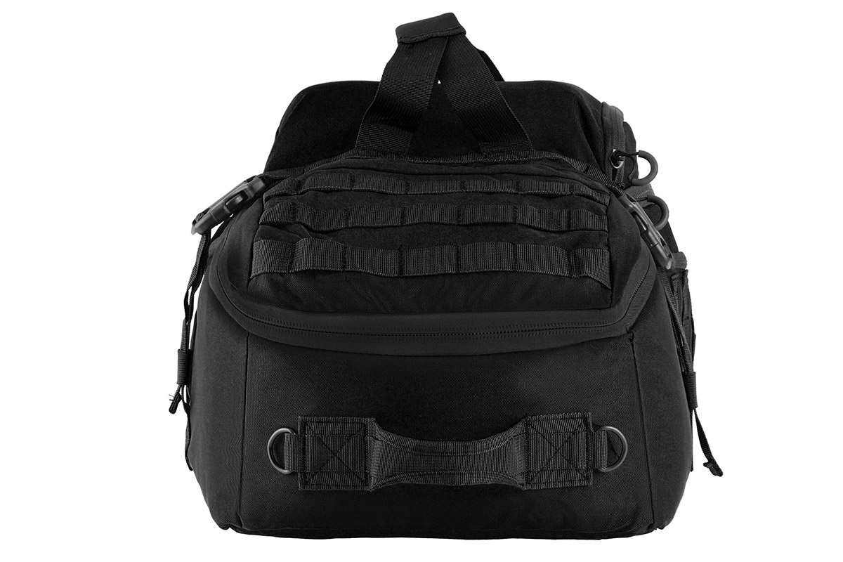 Містка, універсальна і функціональна сумка-баул/рюкзак чорного кольору. Сумка стане незамінною для перенесення і зберігання одягу, спорядження, інструментів та іншого приладдя. Сумка має 3 способи перенесення: ручки, плечовий ремінь, плечові лямки (знаходяться у прихованій кишені, використовуються для режиму рюкзака). Це дає змогу вибрати зручний спосіб перенесення залежно від ситуації. Сумка виконана з міцного та зносостійкого матеріалу, є ідеальним вибором для подорожей, походів, туризму, активного відпочинку та використання у військових умовах.