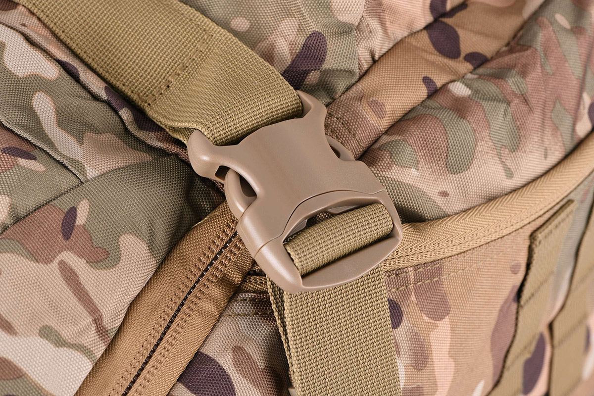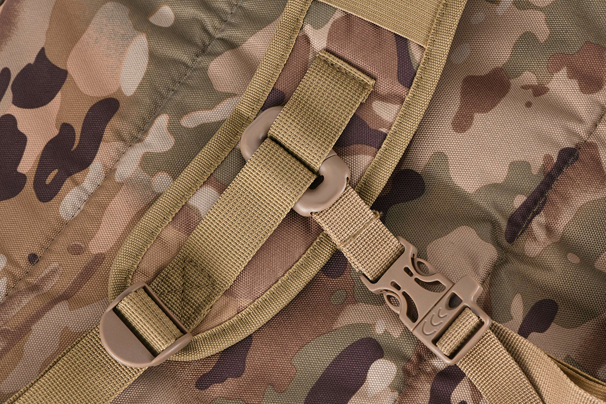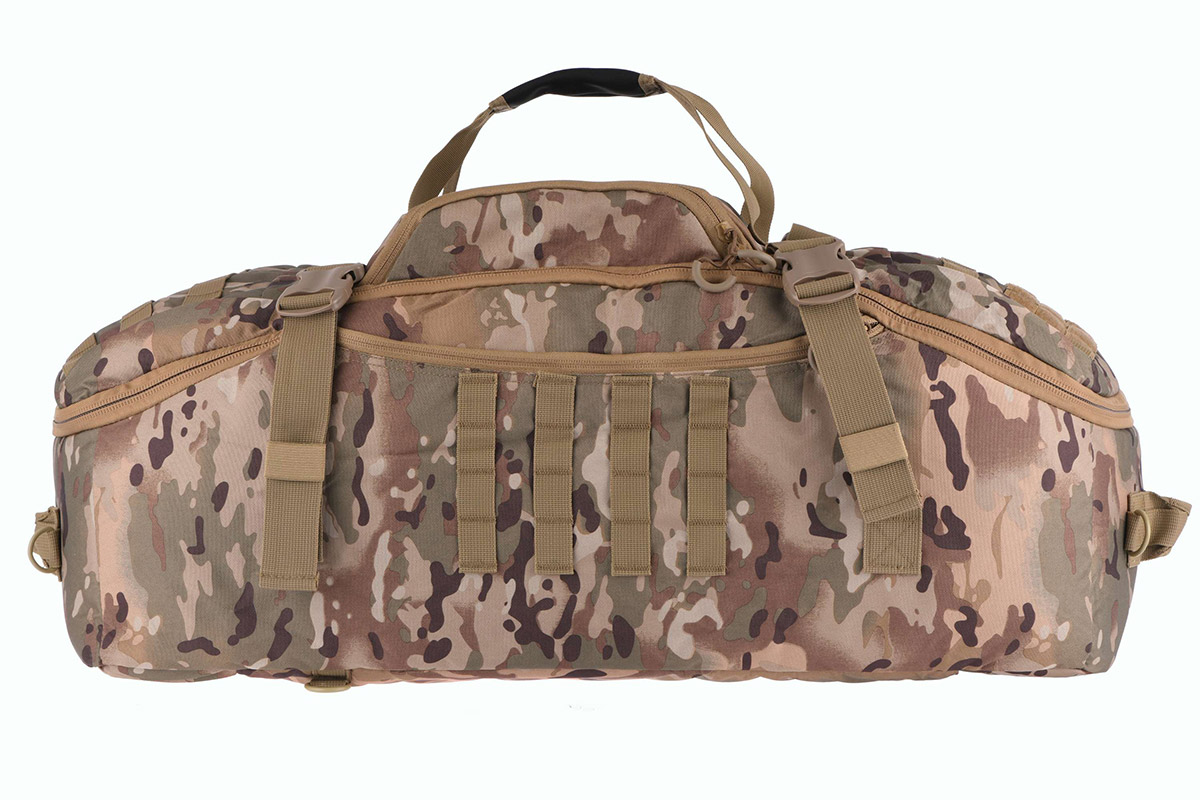 Містка, універсальна і функціональна сумка-баул/рюкзак об'ємом 68 л, в камуфляжних відтінках. Сумка стане незамінною для перенесення і зберігання одягу, спорядження, інструментів та іншого приладдя. Сумка має 3 способи перенесення: ручки, плечовий ремінь, плечові лямки (знаходяться у прихованій кишені, використовуються для режиму рюкзака). Це дає змогу вибрати зручний спосіб перенесення залежно від ситуації. Сумка виконана з міцного та зносостійкого матеріалу, є ідеальним вибором для подорожей, походів, туризму, активного відпочинку та використання у військових умовах.