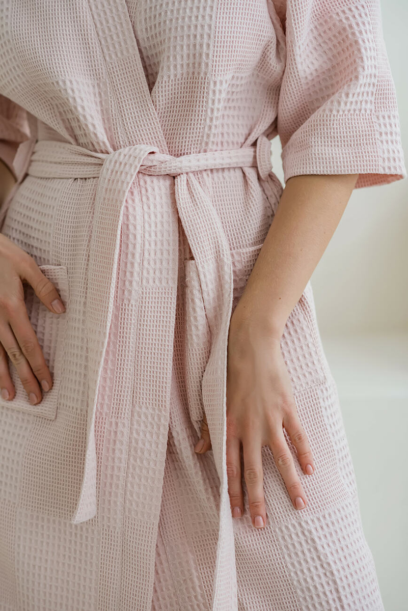 Халат кімоно жіночий вафельний Cosy пудра. Робимо ставку на зручність та комфорт. М'який текстиль, функціональні деталі та лаконічний крій.
