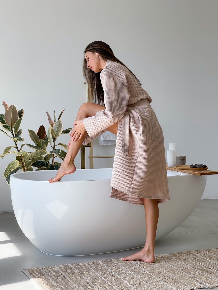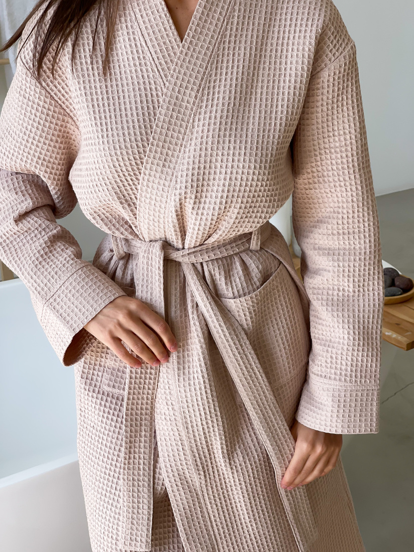 Халат жіночий вафельний довгий Cosy бежевий. Завдяки своїй м'якості та унікальній здатності поглинати вологу вафельну тканину є однією з найпопулярніших серед бавовняних тканин. Зручний довгий халат - незамінна річ у вашому гардеробі. Тканина після прання дає усадку до 5-6%. На моделі (на фото) халат розмір M. Параметри моделі: зріст -172см, груди - 86 см, талія - 60 см, стегна-92 см.