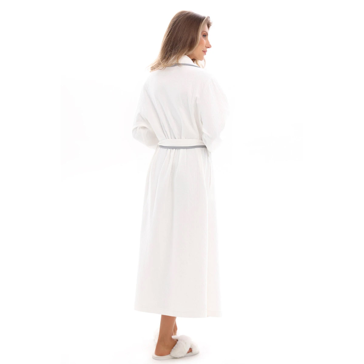 Халат банний German Volf 25080 білий із сірим кантом