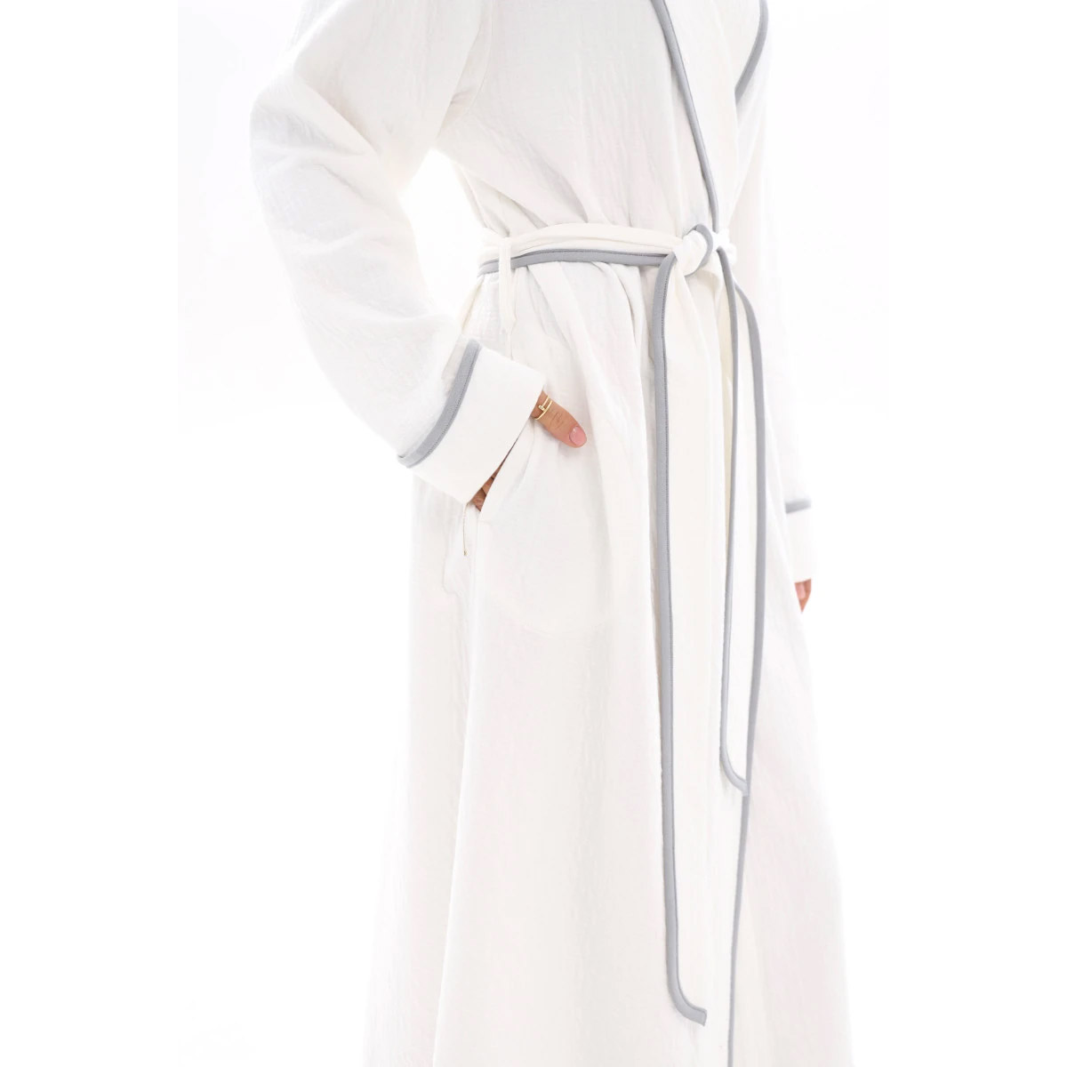 Халат банний German Volf 25080 білий із сірим кантом.