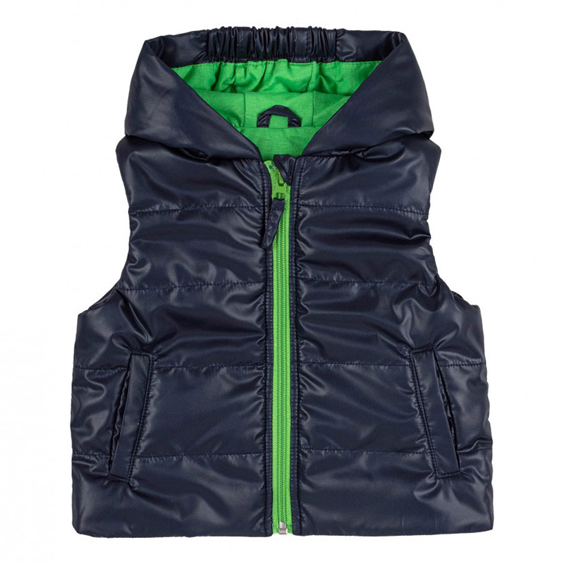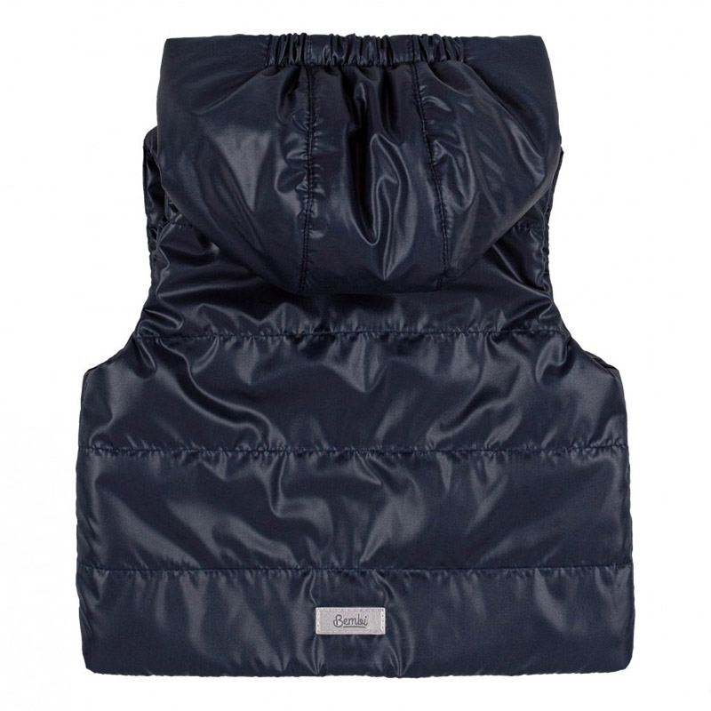 Демісезонний жилет темно-синього кольору. Модель універсальна, підійде і для хлопчика, і для дівчинки. Жилет виконаний з водовідштовхувальної плащової тканини з підкладкою з бавовняної тканини. Утеплювач Comforlight забезпечить додатковий комфорт і затишок. Є зручний капюшон, по центру застібка-блискавка, з боків кишені.